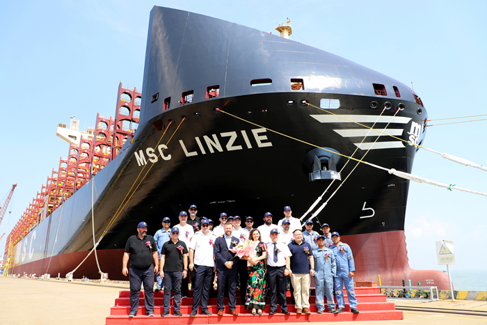 為MSC建造的第九艘LNG雙燃料16000TEU集裝箱船“MSC LINZIE”輪交…