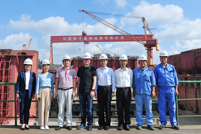 9月27日,中國船舶報(bào)社社長、黨委書記丁文強(qiáng)到公司走訪調(diào)研。集團(tuán)名譽(yù)董事長任元林、集團(tuán)副總經(jīng)理張宏飛陪同調(diào)研。在張宏飛副總的陪同下,丁文強(qiáng)社長一行先后參觀了揚(yáng)子鑫福造船和新?lián)P子造船生產(chǎn)現(xiàn)場、岸線碼頭。