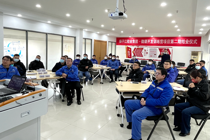 12月13日,為期兩個(gè)月的第二期揚(yáng)子江船業(yè)集團(tuán)·標(biāo)準(zhǔn)課件與微課開(kāi)發(fā)訓(xùn)練營(yíng)項(xiàng)目完美收官。項(xiàng)目結(jié)業(yè)儀式在集團(tuán)行政大樓輔樓C301教室舉行,新?lián)P子造船總經(jīng)理助理茆宏兆、揚(yáng)子鑫福造船總經(jīng)理助理劉銀君、新?lián)P子造船質(zhì)量管理部部長(zhǎng)唐松、揚(yáng)子三井造船品質(zhì)保證部部長(zhǎng)助理陳暢、揚(yáng)子鑫福造船質(zhì)量管理部部長(zhǎng)助理羅歡、集團(tuán)培訓(xùn)中心主任兼集團(tuán)(新?lián)P子)人力資源科科長(zhǎng)顧鵬程、江陰市金信營(yíng)銷(xiāo)與管理咨詢(xún)有限公司總經(jīng)理袁衛(wèi)星及各技術(shù)、質(zhì)量條線(xiàn)管理人員、內(nèi)訓(xùn)師等近30人參加了結(jié)業(yè)儀式。