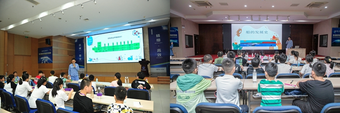 公司組織安排了“船人課堂”,為孩子更好地揭秘、解惑:新?lián)P子造船焊接工藝科科長(zhǎng)錢曉強(qiáng)、揚(yáng)子鑫福造船檢驗(yàn)科張磊科長(zhǎng)、分段車間姜海軍分別為孩子們上了一節(jié)《萬(wàn)噸巨輪大揭秘》課程。老師們運(yùn)用視頻展播、課堂實(shí)驗(yàn)等直觀的體驗(yàn),深入淺出地揭開(kāi)大船的奧秘,為孩子們帶來(lái)了一堂生動(dòng)的船舶知識(shí)普及課,孩子們積極互動(dòng)、主動(dòng)回答。靖江實(shí)驗(yàn)學(xué)校孫老師給孩子們帶來(lái)一堂生動(dòng)有趣的趣味英語(yǔ)課堂《Home is best!》,讓孩子們感受到了課堂之外英語(yǔ)的獨(dú)特魅力。