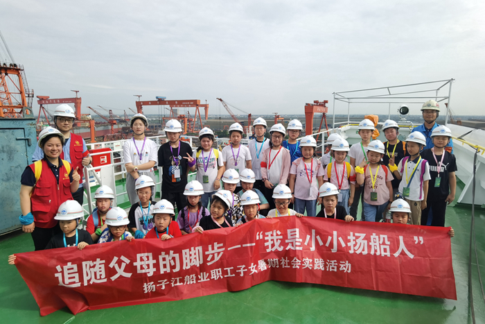 為持續(xù)豐富職工子女的暑假生活、搭建起家企溝通交流的橋梁,第三期“小小揚(yáng)船人”揚(yáng)子江船業(yè)職工子女暑期社會(huì)實(shí)踐活動(dòng)于近期順利舉行。參觀工廠、登覽大船、聽(tīng)造船的流程、學(xué)課外的知識(shí),來(lái)自集團(tuán)各造船子公司近50名職工子女通過(guò)參加活動(dòng),了解船舶制造的基本知識(shí)、父母的工作環(huán)境,在實(shí)踐中體會(huì)父母平時(shí)工作的衣食住行。