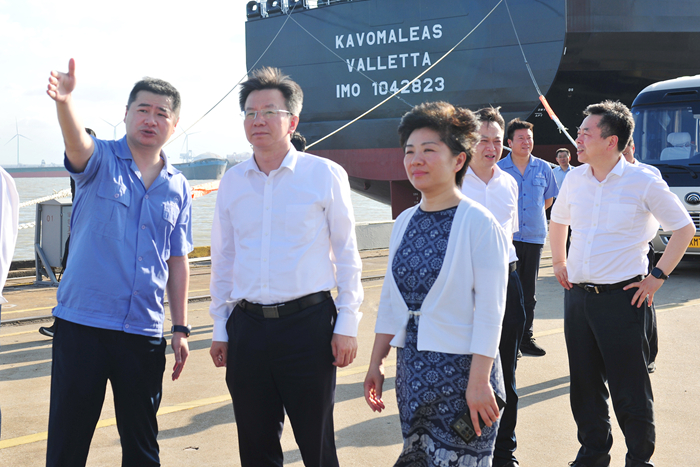 7月9日下午,江蘇省副省長李忠軍率隊蒞臨我揚子江船業(yè)開展調(diào)研工作。泰州市委副書記、市長萬聞華,省政府副秘書長桂俊,省工信廳副廳長李鋒,省藥監(jiān)局局長田豐,以及泰州市委常委、常務(wù)副市長秦猛,泰州市政府秘書長包亞,靖江市委書記申強,靖江市委副書記、代市長黃衛(wèi)平等陪同調(diào)研。揚子江船業(yè)集團董事長任樂天、集團副董事長張宏飛等人熱情接待。